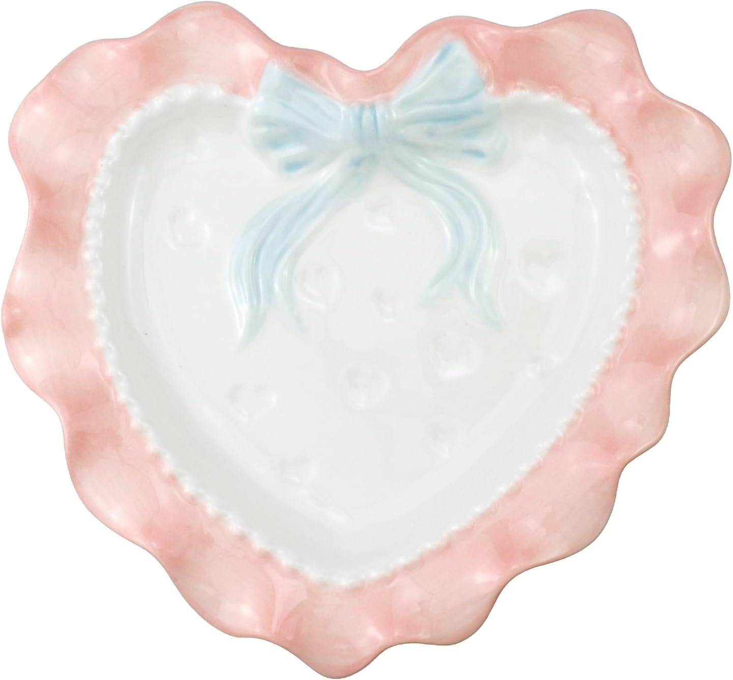 Heart-Shaped Ceramic Plate with Bow – Dessert/Fruit/Snack Plate